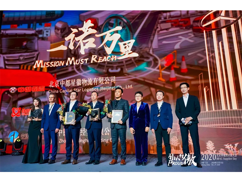 12月15日,北京奔馳以“引以為傲”為主題的2020年度供應(yīng)商大會(huì)在京舉行,北汽集團(tuán)、戴姆勒、北京奔馳相關(guān)領(lǐng)導(dǎo)及供應(yīng)商代表參加會(huì)議。會(huì)議表彰了北京奔馳2020年度優(yōu)秀供應(yīng)商,中都物流有限公司榮獲“星途與共”獎(jiǎng),北京中都星徽物流有限公司榮獲“一諾萬里”獎(jiǎng)。中都物流總經(jīng)理朱勵(lì)光、中都星徽黨支部書記、總經(jīng)理于冬參加領(lǐng)獎(jiǎng)。