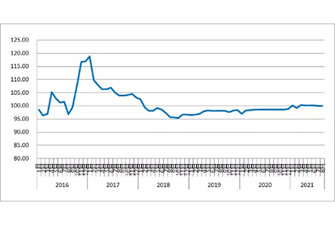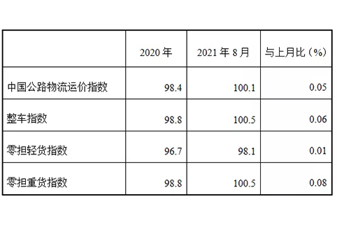 2021年8月份中國(guó)公路物流運(yùn)價(jià)指數(shù)為100.1點(diǎn)