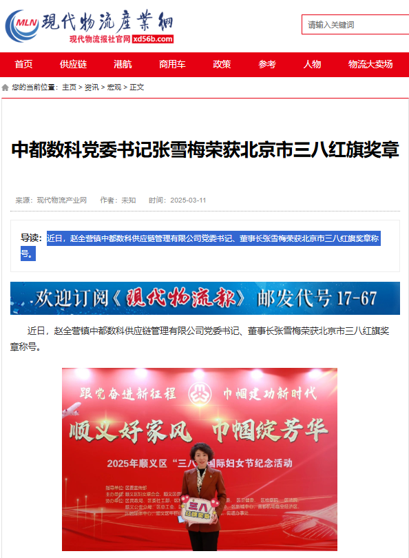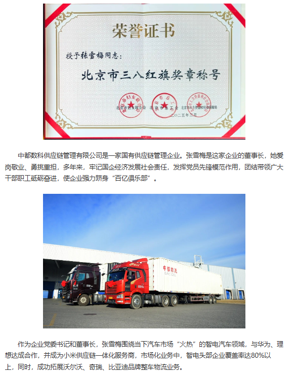 中都數(shù)科黨委書記張雪梅榮獲北京市三八紅旗獎(jiǎng)?wù)?